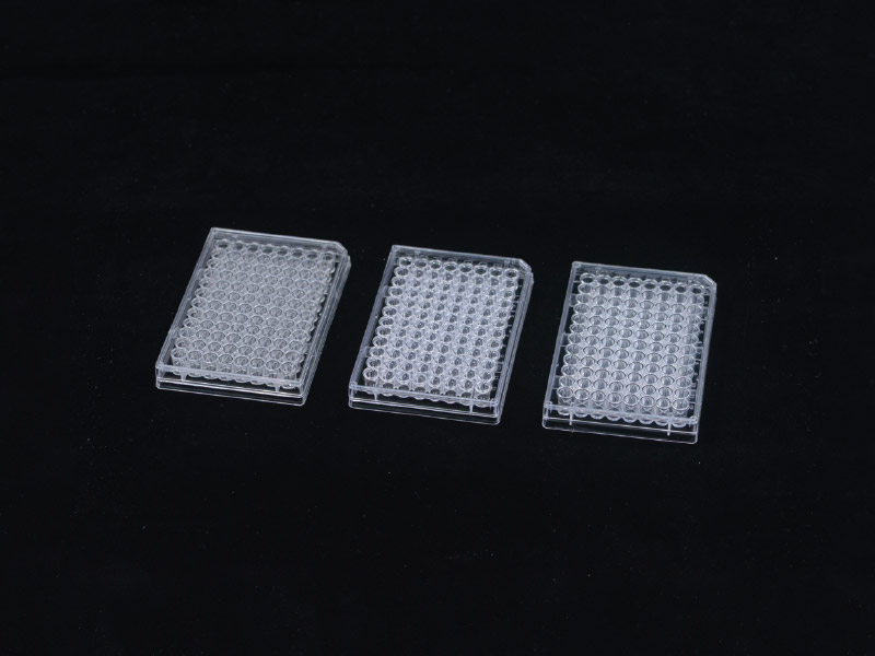 Microplaca com superfície de crescimento tratada para excelente adesão celular.